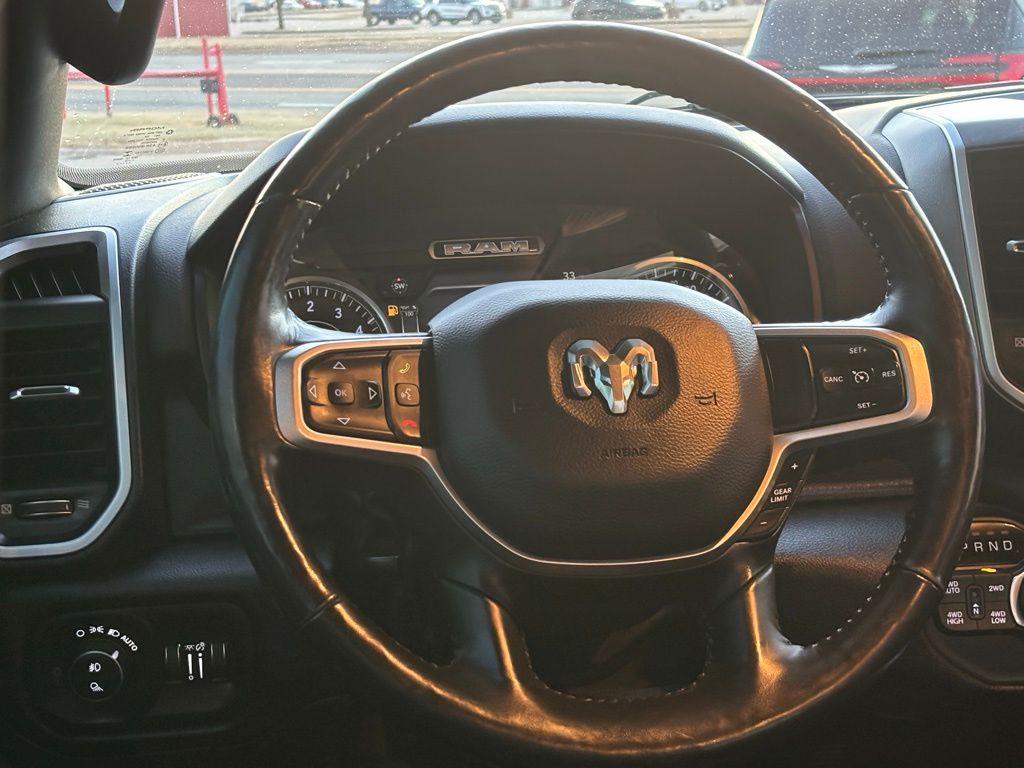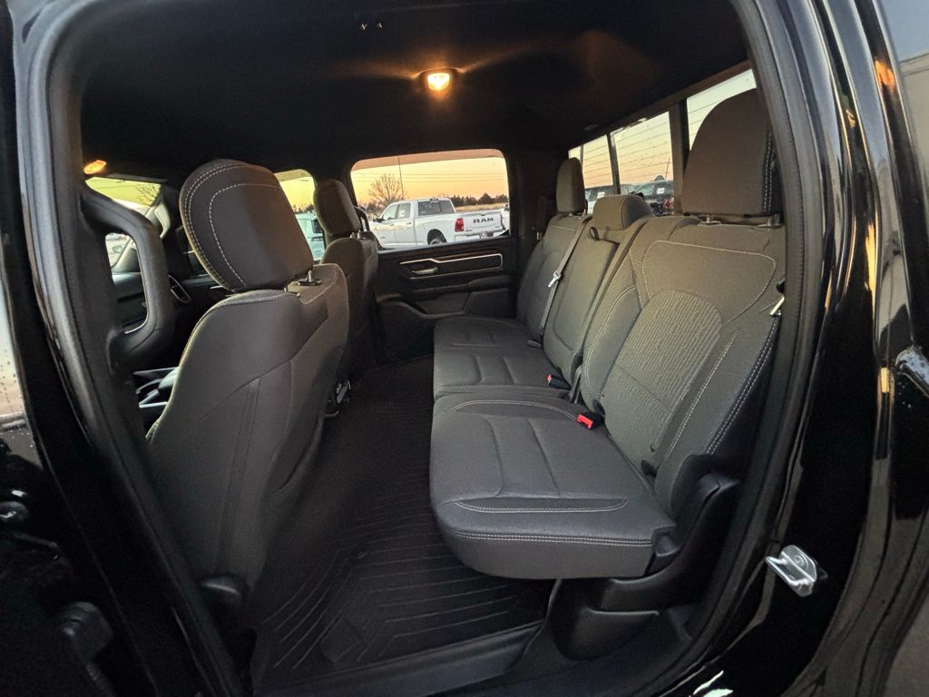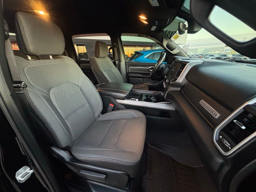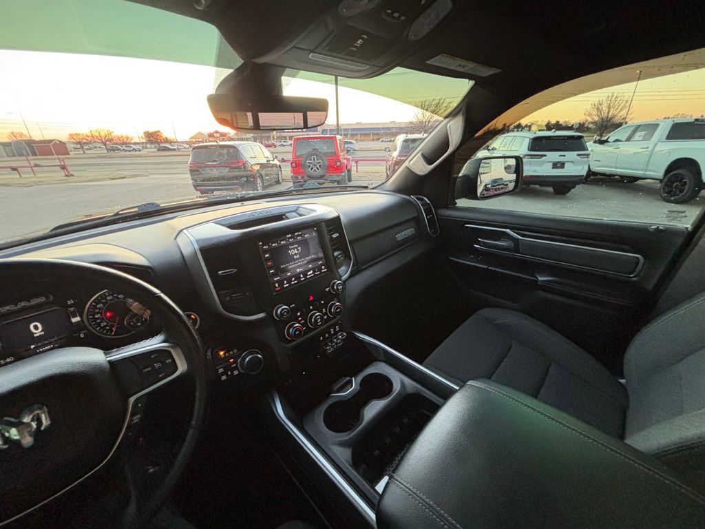 115V Auxiliary Power Outlet, 115V Auxiliary Rear Power Outlet, 2 USB Full Function/Charge Only Media Hub, 3 Rear Seat Head Restraints, 4 Way Front Headrests, 400W Inverter, 8.4" Touchscreen Display, Air Conditioning ATC w/Dual Zone Control, Auto-Dimming Exterior Driver Mirror, Auto-Dimming Rear-View Mirror, Big Horn IP Badge, Big Horn Level 2 Equipment Group, Black Appearance Package, Black Exterior Truck Badging, Black Headlamp Bezels, Black Interior Accents, Body Color Door Handles, Body Color Front Bumper, Body Color Rear Bumper w/Step Pads, Bucket Seats, Center Console Parts Module, Class IV Receiver Hitch, Cluster 7.0" TFT Color Display, Dampened Tailgate, Deluxe Cloth Bucket Seats, Dual Exhaust w/Black Tips, Exterior Mirrors Courtesy Lamps, Exterior Mirrors w/Memory, Exterior Mirrors w/Supplemental Signals, Foam Bottle Insert (Door Trim Panel), Front Seat Back Map Pockets, Full Length Floor Console, Glove Box Lamp, Grille B/Color Outline 1 Texture 2, Heated Front Seats, Heated Steering Wheel, Integrated Center Stack Radio, Manual Adjust 4-Way Front Passenger Seat, ParkSense Front/Rear Park Assist w/Stop, Power 4-Way Driver Lumbar Adjust, Power 8-Way Driver Seat, Power Adjustable Pedals, Power Heated Fold Away Mirrors, Power Heated Fold-Away Mirrors, Power-Folding Mirrors, Quick Order Package 25Z Big Horn/Lone Star, Radio: Uconnect 4 w/8.4" Display, Rear 60/40 Folding Seat, Rear Dome w/On/Off Switch Lamp, Rear Power Sliding Window, Rear Window Defroster, Remote Start System, Security Alarm, Single Disc Remote CD Player, SiriusXM Satellite Radio, Steering Wheel Mounted Audio Controls, Sun Visors w/Illuminated Vanity Mirrors, Universal Garage Door Opener, Wheels: 20" x 9" Cast Aluminum Black.