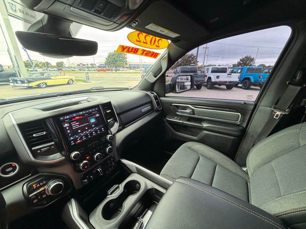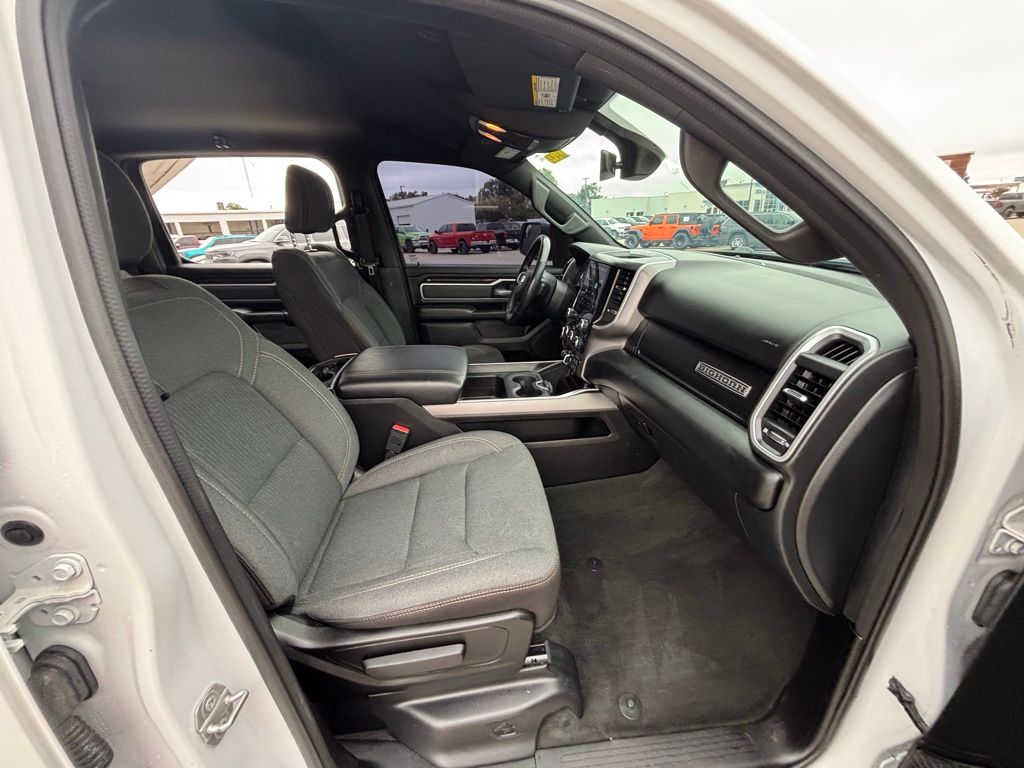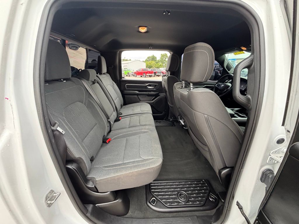 115V Auxiliary Power Outlet, 115V Auxiliary Rear Power Outlet, 2nd Row In Floor Storage Bins, 3 Rear Seat Head Restraints, 3.21 Rear Axle Ratio, 4 Way Front Headrests, 4-Wheel Disc Brakes, 400W Inverter, 48V Belt Starter Generator, 4G LTE Wi-Fi Hot Spot, 6 Speakers, 8.4" Touchscreen Display, ABS brakes, Air Conditioning, Air Conditioning ATC w/Dual Zone Control, All Plant-Installed Decals, All R1 High Radios, All Radio Equipped Vehicles, Alloy wheels, AM/FM radio, Anti-Spin Differential Rear Axle, Apple CarPlay, Auto-Dimming Exterior Driver Mirror, Auto-Dimming Rear-View Mirror, Big Horn Badge, Big Horn Level 2 Equipment Group, Black Exterior Mirrors, Black Interior Accents, Black Premium Power Mirrors, Bluetooth Handsfree Phone & Audio, Body Color Exterior Mirrors, Body Color Front Bumper, Body Color Premium Power Mirrors, Body Color Rear Bumper w/Step Pads, Brake assist, Bridgestone Brand Tires, Bucket Seats, Bumpers: chrome, Class IV Receiver Hitch, Cloth Bench Seat, Cluster 7.0" TFT Color Display, Compass, Connected Travel & Traffic Services, Connectivity - US/Canada, Convex Wide-Angle Mirror Insert, Delay-off headlights, Delete LED Lamp - Floor Console Bin, Deluxe Cloth Bucket Seats, Disassociated Touchscreen Display, Driver door bin, Dual front impact airbags, Dual front side impact airbags, Electronic Stability Control, Emergency communication system: SiriusXM Guardian, Exterior Mirrors Courtesy Lamps, Exterior Mirrors w/Heating Element, Exterior Mirrors w/Supplemental Signals, For Details, Visit DriveUconnect.com, Front anti-roll bar, Front Center Armrest w/Storage, Front fog lights, Front reading lights, Front Seat Back Map Pockets, Front wheel independent suspension, Full Length Floor Console, Global Telematics Box Module (TBM), Glove Box Lamp, Google Android Auto, GPS Antenna Input, GPS Navigation, HD Radio, Heated door mirrors, Heated Front Seats, Heated Steering Wheel, Heavy-Duty Engine Cooling, Integrated Center Stack Radio, Integrated Voice Command w/Bluetooth, Leather steering wheel, Low tire pressure warning, Manual Adjust 4-Way Front Passenger Seat, Media Hub w/2 Charge Only USBs, MOPAR Front & Rear Rubber Floor Mats, Occupant sensing airbag, Outside temperature display, Overhead airbag, Overhead console, Panic alarm, ParkSense Front/Rear Park Assist w/Stop, ParkView Rear Back-Up Camera, Passenger door bin, Passenger vanity mirror, Power 2-Way Driver Lumbar Adjust, Power 8-Way Driver Seat, Power Adjustable Pedals, Power door mirrors, Power steering, Power windows, Power-Folding Mirrors, Protection Group, Quick Order Package 27Z Big Horn, Radio data system, Radio: Uconnect 3 w/5" Display, Radio: Uconnect 5 Nav w/8.4" Display, Radio: Uconnect 5 W w/8.4" Display, Rear 60/40 Folding Seat, Rear Center Armrest, Rear Dome w/On/Off Switch Lamp, Rear Power Sliding Window, Rear seat center armrest, Rear step bumper, Rear Wheelhouse Liners, Rear Window Defroster, Remote keyless entry, Remote Start System, Security Alarm, SiriusXM Radio Service, SiriusXM w/360L, Speed control, Split folding rear seat, Sport Appearance Package, Sport Decal, Steering wheel mounted audio controls, Sun Visors w/Illuminated Vanity Mirrors, Tachometer, Telescoping steering wheel, Tilt steering wheel, Tow Hooks, Traction control, Trailer Brake Control, Trailer Light Check, Trailer Reverse Steering Control, Trailer Tire Pressure Monitoring System, Trailer Tow Group, Trip computer, Universal Garage Door Opener, USB Host Flip, Variably intermittent wipers, Voltmeter, Wheels: 18" x 8" Cast-Aluminum Painted, Wheels: 20" x 9" Aluminum Chrome Clad (WRK).