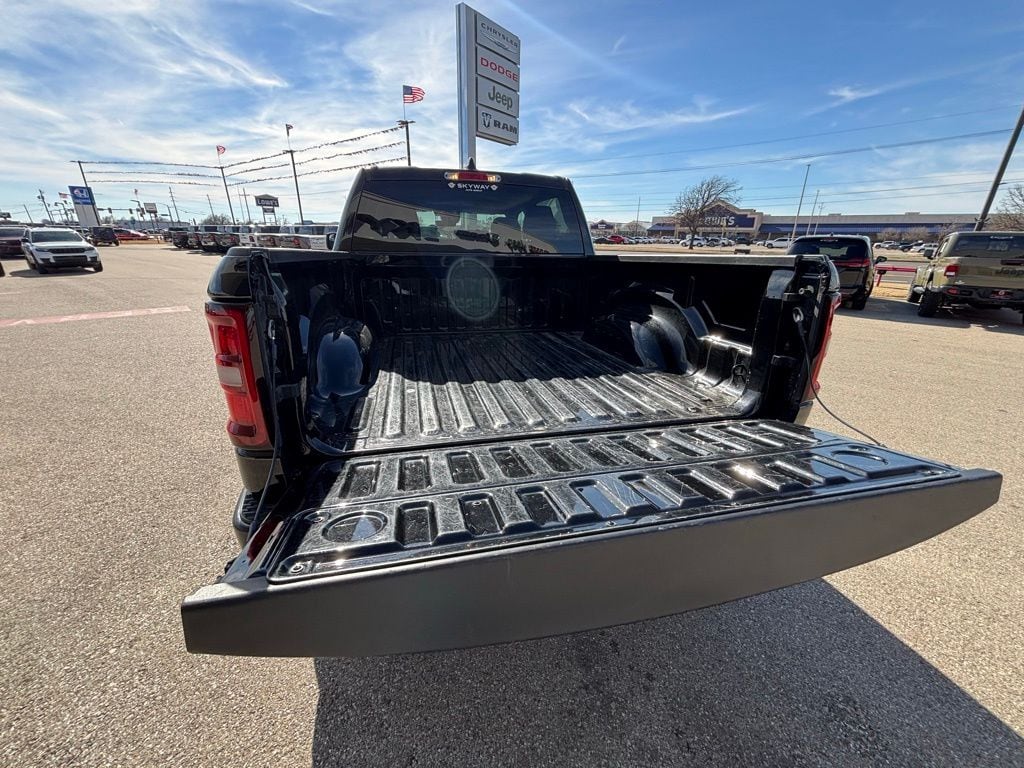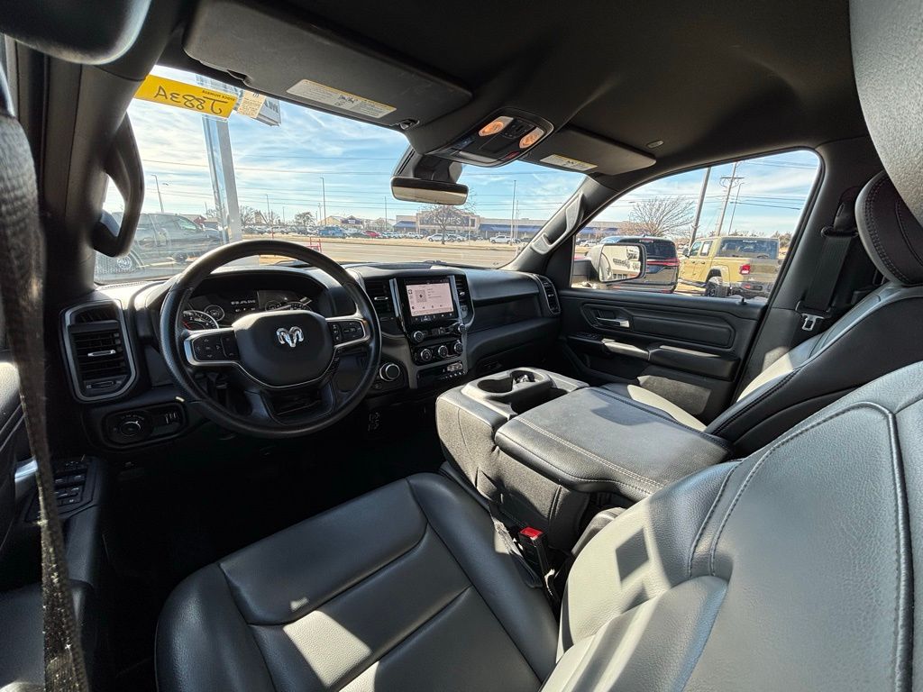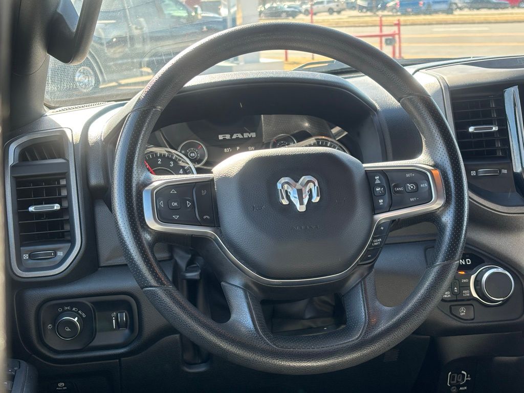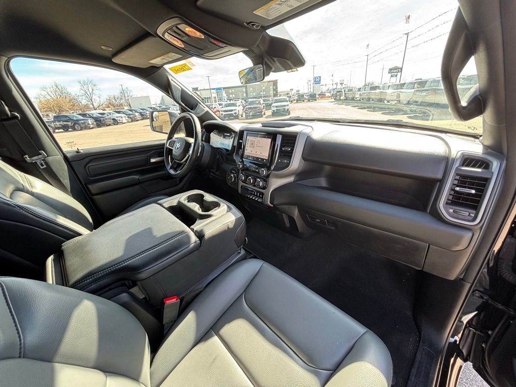 4 Way Front Headrests, 4-Wheel Disc Brakes, 40/20/40 Split Bench Seat, 6 Speakers, ABS brakes, Air Conditioning, AM/FM radio, Apple CarPlay/Android Auto, Auto High-beam Headlights, Brake assist, Compass, Delay-off headlights, Driver door bin, Dual front impact airbags, Dual front side impact airbags, Electronic Stability Control, Front anti-roll bar, Front Center Armrest, Front reading lights, Front wheel independent suspension, Fully automatic headlights, Heated door mirrors, Heavy Duty Vinyl 40/20/40 Split Bench Seat, Illuminated entry, Low tire pressure warning, Manual Adjust 4-Way Driver Seat, Manual Adjust 4-Way Front Passenger Seat, Manual Folding Exterior Mirrors, Occupant sensing airbag, Outside temperature display, Overhead airbag, Overhead console, Panic alarm, ParkView Rear Back-Up Camera, Passenger door bin, Passenger vanity mirror, Power door mirrors, Power steering, Power windows, Quick Order Package 23A Tradesman, Radio data system, Radio: Uconnect 5 W w/8.4" Display, RAM Grille Badge - Black, Rear anti-roll bar, Rear step bumper, Remote keyless entry, Speed control, Tachometer, Telescoping steering wheel, Tilt steering wheel, Traction control, Variably intermittent wipers, Voltmeter, Wheels: 18" x 7.5" Steel Painted.